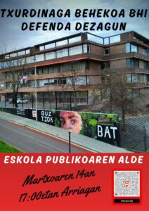 Txurdinaga Behekoa hezkuntza komunitateak manifestazio bat antolatu du biharko eskola publikoa defendatzeko. Eusko jaurlaritzak institutoko batxilergoa eta goi zikloa kentzearen erabakia izan da mobilizazioaren zegatia. Ruben Nieto ikaslearekin mintzatu gara.